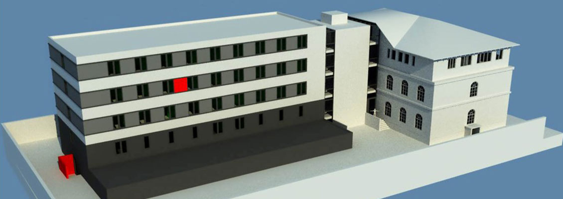 Um das Ziel der Baumaßnahme zu erreichen, wurde stufenweise der vorliegende Entwurf, unter Abbruch des ungenutzten Gefängnisgebäudes und der Anbauten, Neuordnung der Freiflächen und der Erweiterung des vorhandenen Gebäudes durch einen Neubau, entwickelt.